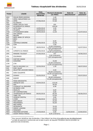 Tableau des dividendes actualisé au 30 mars 2018 | PDF