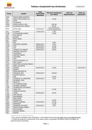 Tableau des dividendes actualisé au 17 mars 2017 | PDF