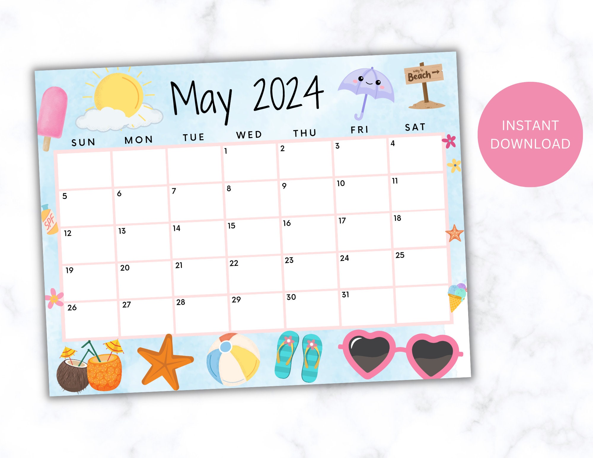 BEARBEITBARER Mai 2024 Kalender druckbarer Kalender 2024 Etsy